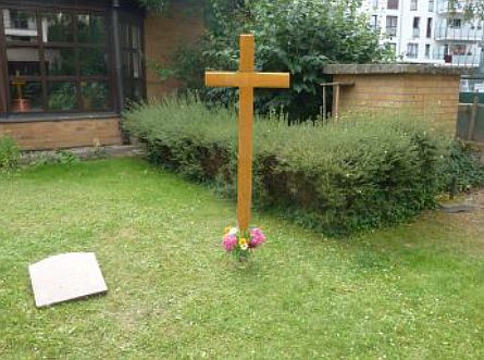 In der Nähe des Komposthaufens hatten wir auf der Wiese ein Kreuz aufgestellt und einen Grabstein liegen. Wir sprachen über das Sterben, das Wieder-zur Erde-Werden und unsere Hoffnung auf Auferstehung.