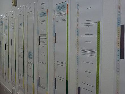 Dies ist der Blick beim Verlassen des Zeittunnels auf den Zeitstrahl, der in Fußgröße die Jahre eines 100-Jährigen abbildet.
