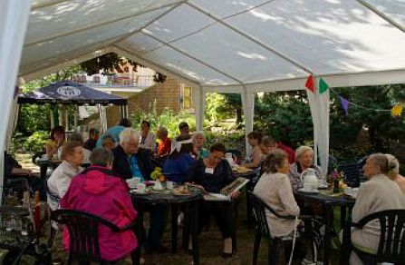 Erfrischung bei Saft, Kaffee und Kuchen.