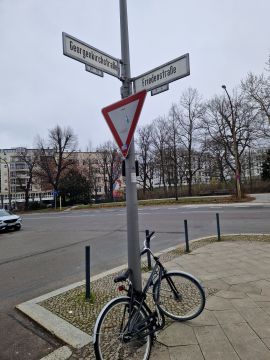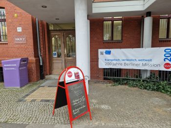 An der Georgenkirchstraße / Ecke Friedenstra?e befindet sich dass Gebäude der Berliner Mission, die gerade ihr 200jähriges Bestehen feiert und das heute daneben auch andere evangelische Werke wie die Missionsbuchhandlung, das Medienhaus, die Evangelische Bank und vor allem die Verwaltung / das Konsistorium der Evangelischen Kirche Berlin-Brandenburg Schlesische Oberlausitz, abgekürzt EKBO beherbergt.