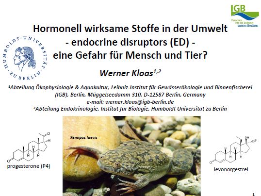 In einem europäischen Forschungsprojekt wurde im Berliner Institut das Wasser des Lambro, eines Nebenflusses des Po in Italien, untersucht. Bei Amphibien und Fischen gibt es ein Zeitfenster, in dem eine Umwandlung des Geschlechts erfolgen kann. Im Wasser des Lambro passierte dies auch bei erwachsenen Fröschen. In männlichen Fröschen bildeten sich im Hoden Eizellen und bei weiblichen Fröschen Spermien. Die sexuelle Differenzierung hatte sich ebenfalls verändert.