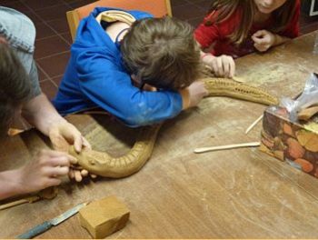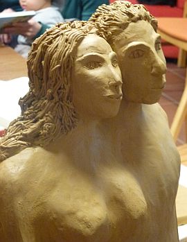 Seit Februar 2015 haben Kinder zusammen mit der Künstlerin Birigit Wiemann eine erste Figurengruppe gestaltet: Adam, Eva und die Schlange. Im Oktober und November hatten sie sich mit den Geschichten auf den ersten Seiten der Heiligen Schrift beschäftigt und diese Geschichte aus dem 1. Buch Mose, Kapitel 3 ausgesucht, um sie nun in Ton zu gestalten.