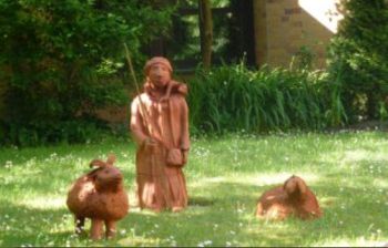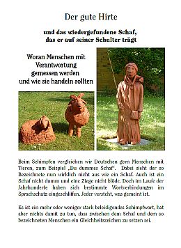 Die zweite Figurengruppe "Der gute Hirte" (und seine Schafe), wurde im Anschluss an den Gottesdienst am 31. Mai 2015 enthüllt.