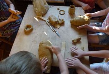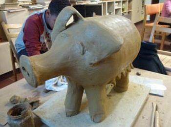 So gestalteten sie eine Sau mit ihren Ferkeln und einen Trog, aus dem sie fressen.