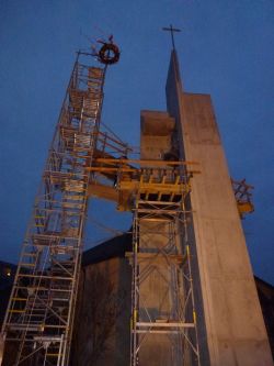 Am Mittwoch, dem 21. November 2012 dem Buß- und Bettag wurde das Kreuz am Turm befestigt