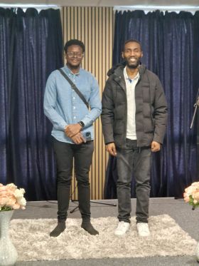 Dies ist auch das Anliegen von Pastor Collins - hier rechts auf dem Foto- , links zu sehen ist Samuel, der für uns sein Englisch übersetzt.