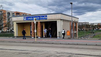 Gleich neben dem U-Bahnhof Louis-Lewin-Straße (auf der anderen Straßenseite) befindet sich die 2017 errichtete Gemeinschaftsunterkunft, von denen es in derselben Bauweise ja noch mehrere im Stadtbezirk gibt.