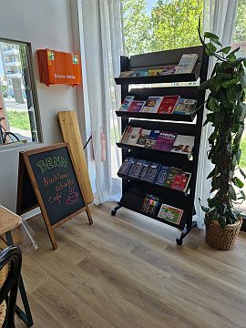 Gleich am Eingang steht dieses Regal mit Flyern und Infos, wo auch das so schön gestaltete Heftchen über die Arbeit des Teams hier zu finden ist.