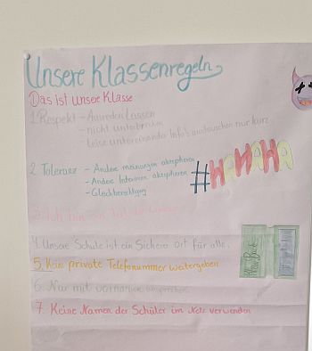 In einem der Klassenräume sind die verabredeten Regeln zu lesen: