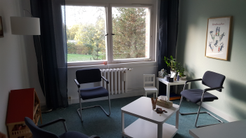 Hier zwei weitere der hellen freundlichen Räume, in denen man auch an die mitgebrachten Kinder gedacht hat, denn um sie geht es hier in erster Linie: Das spüren wir auch beim Erzählen von der täglichen Arbeit. Sie leiden unter den Konflikten ihrer Eltern am meisten und um ihre Zukunft geht es.