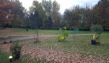In einer der vielen Seitenstraßen Biesdorfs rechts und links der viel befahrenen Köpenicker Straße erwartet man eher Einfamilienhäuser als so große prächtige, wie wir hier entdecken. Es sind Grundstücke direkt an „unserer“ Wuhle gelegen, also Wassergrundstücke, auch wenn das ein Berliner nicht so sehen würde. Schon das Betreten des Grundstücks ist ein erhebendes Gefühl. Vor uns ein großer Park mit alten Bäumen, eine Wiese mit zwei Fußballtoren. Hier wird also auch Sport getrieben.