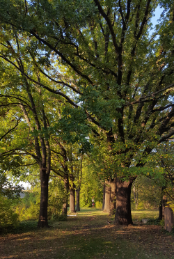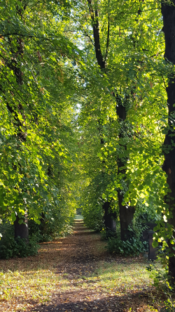 Im Herbst sieht der Blick durch die Baumallee zurück zum Eingang so wunderschön aus.