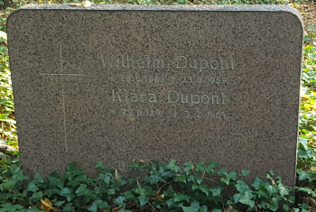 Ein Grabstein mit dem französischen Namen Dupont lässt auf Nachfahren der Hugenotten, die evangelischen Glaubensflüchtlingen aus Frankreich, schließen:
