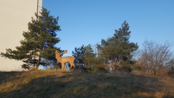 Die Kölpiner Straße 3 befindet sich im Schorfheide-Viertel in Marzahn-Nord. Von der Straßenbahnhaltestelle Barnimplatz sucht der Blick am besten den Hirsch zwischen den Elfgeschossern, der an das große Naturschutzgebiet nordöstlich von Berlin erinnern soll.