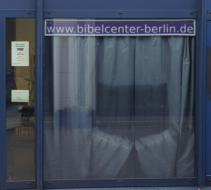 Aufgrund der Initiative von 4 Männern, die den Raum mieteten, entstand hier das Bibelcenter Marzahn, so zu lesen auf dem rechten Schaufenster. Auf ihrer Webseite heißt es dazu u.a.: „Das Bibelcenter-Berlin eine freie, überkonfessionelle theologische Ausbildungsstätte für Mission und Gemeindeaufbau mit integrierter Bibelschule.“