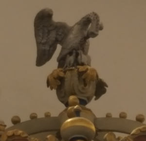 Oben wird sie gekrönt von dem Symbol des Pelikans, der seine Jungen mit seinem eigenen Blut füttert: Ein Symbol für Jesus, der für uns sein Blut vergossen hat.