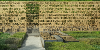 Hier der Blick auf einen der beiden Eingänge. 2007 wurde ein Wettbewerb ausgeschrieben, den Marianne Mommsen und Gero Heck, die Gründer des Landschaftsarchitekturbüros „relaisla“ gewannen. Nach zweijähriger Bauzeit wurde der Garten 2011 eingeweiht.