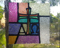 Diese bunten Fenstersymbole wurden von den Kindern nach einer Vorlage gestaltet.
