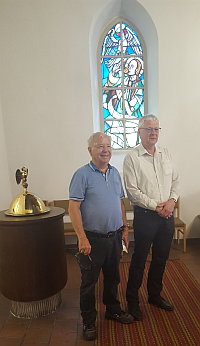 Gemeindeleiter Klaus Kautsch und Pfarrer Frank Grützmann weisen uns auf Besonderheiten hin und erzählen uns aus der Gemeindegeschichte. Freude und Dankbarkeit über alles, was in all den Jahren erreicht werden konnte, in immer wieder auch schwierigen Ausgangslagen, spüren wir lebhaft.