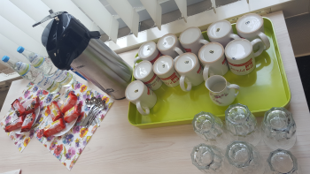 Für uns stehen schon Kaffee, Wasser und Snacks bereit. Zuerst aber berichtet uns die Leiterin der Einrichtung Frau Heitmann über die Arbeit und Angebote der Sozialstation. Schnell kommen wir ins Gespräch und erhalten kompetente Auskunft zu so mancher uns auch persönlich interessierenden Frage. Denn die meisten von uns sind ja auch beim Altwerden oder haben alte Eltern.