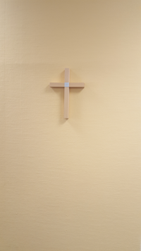 An der einen Wand weist ein Kreuz auf den christlichen Geist, den nicht nur die Mitarbeiter, sondern auch die Kunden von der Caritas als von einem Werk der katholischen Kirche erwarten. Kirchenmitgliedschaft ist aber für die Mitarbeiter nicht Voraussetzung für die Arbeit und natürlich auch für die Kunden nicht.