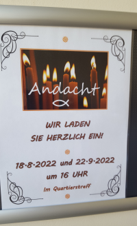 Einmal im Monat wird hier zu einer Andacht des Seelsorgers der Einrichtung eingeladen, der immer dienstags und donnerstags im Zentrum ist.