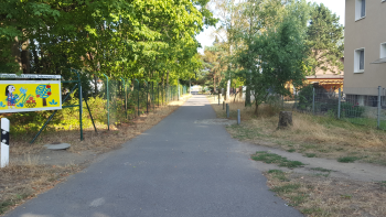 Von der Haltestelle des Busses 195 „Karlshafener Straße“ kommend, ging die Sudermannstraße hier plötzlich nicht weiter. Das Schild zeigte eine Sackgasse an und die App auf dem Handy riet, in den Pfarrhufenweg links einzubiegen, um dann wieder rechts auf die Sudermannstraße zu kommen.