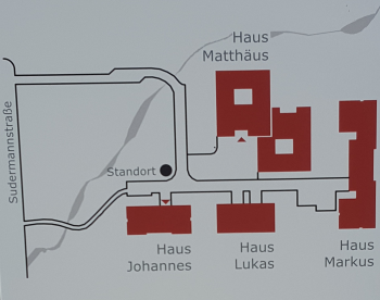 Im Haus Johannes ganz vorn links befinden sich zwei Demenzwohngemeinschaften und auch noch seniorengerechte Wohnungen, wie auch im Haus Lukas.