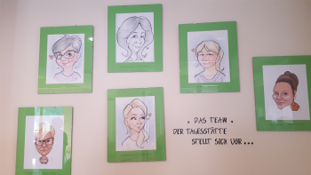 Das Team der Mitarbeiterinnen hat sich auf diese fröhliche Weise an der Wand groß vorgestellt.