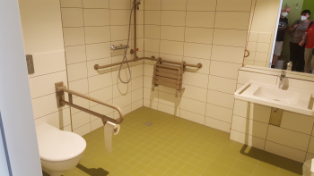 Sehr geräumig und praktisch: die Toilette und Dusche.