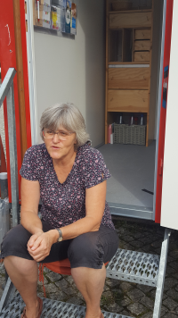So ist innen vor allem Platz für die Stühle, den Tisch und die kleine Treppe, die abends wieder abgebaut werden muss. Das verlangt aber auch körperliche Anstrengung, die ältere Ehrenamtliche nicht mehr leisten können. Dies ist einer der Gründe, warum das Konzept nicht aufging, dass sich eine ganze Gruppe von Ehrenamtlichen für dieses Projekt zur Verfügung stellt.