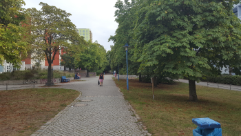 Ein Schild am Rande weist auf seinen Namen: Regine-Hildebrandt-Park. Mit ihm wird die engagierte Berliner Christin, SPD-Politikerin und Ministerin geehrt, die 2001 mit nur 60 Jahren verstarb.