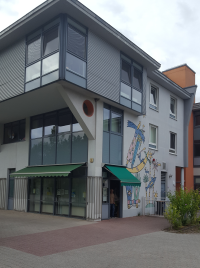 Auf der Mylauer Straße, am Rand des Parks gelegen gelangen wir zur Nummer 1, dem Haus Erntekranz der Tiele-Winckler-Haus GmbH im Verbund von Friedenshort, das wir auch noch besuchen wollen, einem Haus für betreutes Wohnen von Menschen mit vorwiegend geistiger Behinderung.