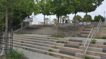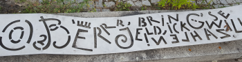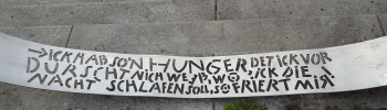 Am U-Bahnhof Hellersdorf stiegen wir aus der Straßenbahn aus und gingen dann hinter der Brücke über die U-Bahngleise diese interessante Treppe hinunter, interessant durch geschwungene Bänder mit ihren Sprüchen auf Berlinerisch.