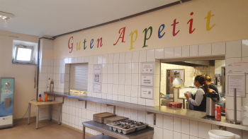 Auch hier bei der Essenausgabe: So farbenfroh und freundlich wird „Guten Appetit“ gewünscht!