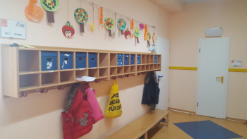 Hier sind wir im Spielflur, der viel Platz bietet im Winter oder an Regentagen, um sich zu bewegen und zu spielen: