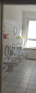 Auch die Toiletten und Waschbecken entsprechen der Größe der Kinder.