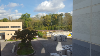 Der Blick aus dem Fenster zeigt links die Turnhalle und rechts die Baustelle, wo jetzt eine Kita für 80 Kinder gebaut wird. Denn es fehlen in Hellersdorf zurzeit 2000 Kita-Plätze.