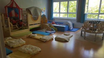 Nach dem Mittagessen können die Kinder hier auch Mittagsschlaf halten.