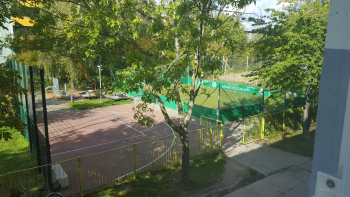 Zu sehen ist auch der Sportplatz, der vielfältig genutzt werden kann.
