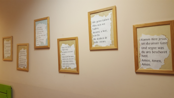 Die Eltern können hier die Gebete lesen, mit denen die Kinder ihre Mahlzeiten beginnen und beenden.