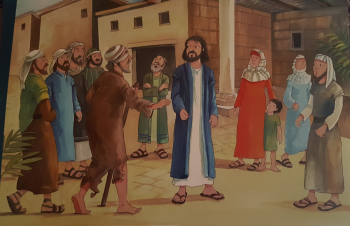 Da werden biblische Geschichten erzählt und mit Hilfe solch großer Bilder illustriert.