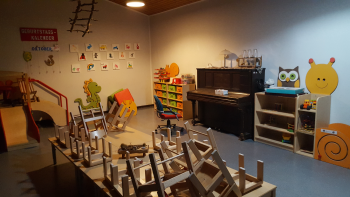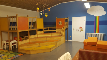 Hier der Turnraum der auch zweimal wöchentlich für den Morgenkreis aller Kinder genutzt wird.