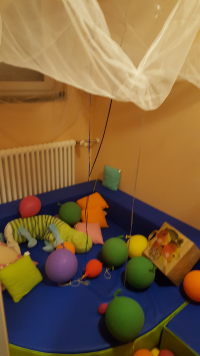 Für die Müdegewordenen gibt es diese schöne Snuzzle- Ecke im Nebenraum.