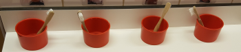 Die Zahnbürstchen sehen alle gleich aus und bestehen aus Bambus – ein Anliegen auch der Eltern, dass die Ökologie berücksichtigt wird.