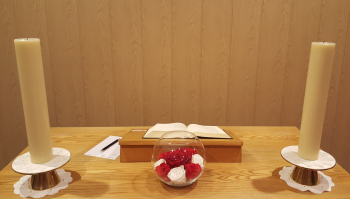 Das Wort Gottes – die Heilige Schrift in der Luther-Übersetzung liegt im Mittelpunkt und weist auf das Zentrum der Gottesdienste.