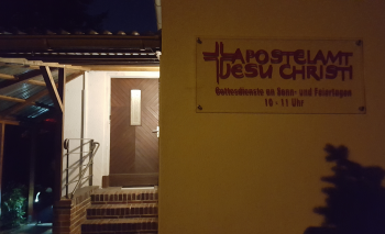 Es ist ein Haus, wie die anderen hier auch in der Strasse, aber ein großes Schild an der Hauswand weist daraufhin, wer hier zu Hause ist und lädt gleichzeitig zu den Gottesdiensten sonn- und feiertags um 10 Uhr ein.