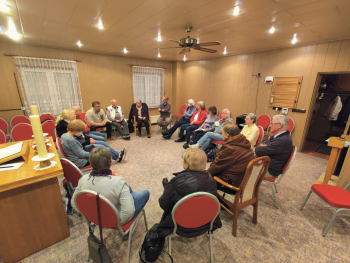 Die Auslegung der Heiligen Schrift, das gemeinsame Gebet und die Seelsorge aneinander sind Zentrum des Gemeindelebens. Das spüren wir und erfahren an diesem Abend durch das Berichten über die Situation dieser Gemeinde und Kirche selbst viel Seelsorge, denn die angesprochenen Probleme kennen wir auch alle.