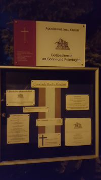 Wir wurden neben dem Priester Arian Fischer als dem Leiter der Biesdorfer Gemeinde und Evangelisten der Gemeinde vom Apostel der Kirche empfangen, der das höchste Amt dieser Kirche innehat und den Heiligen Geist spenden und Gläubige durch die Heilige Versiegelung in diese Kirche aufnehmen kann. All dies geschieht im Ehrenamt!