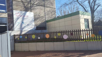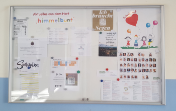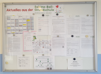 Für die Eltern gibt es große Info-Tafeln, sowohl für die Schule, wie den Hort „himmelbunt“.